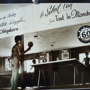 Now I know what you're asking yourself because I asked it too. "Egads! Who would do such a thing?" He told me about this place when we first started dating and my initial reaction was, "Oh my god! Your grandparents are swingers!" But it turns out they're just European. Seems they aren't shackled by the deeply ingrained taboos we Yanks are and so see nothing at all wrong with: riding bikes, playing tennis, cleaning roof gutters or dining out 'tout nu'. For theirs is a far more sophisticated god than ours and this is clearly His Divinely Minimalist Plan. I wouldn't be at all surprised if this Holy Host has a Heavenly Mistress tucked away on some plush cloud, to boot. C'est natural.